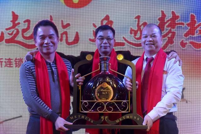 获奖幸运者上台领奖并合影,留住精彩瞬间,本次抽奖活动特等奖为价值超两万元的12斤的密特斯XO限量珍藏版,幸运者是下图这位嘉宾,恭喜他!!!